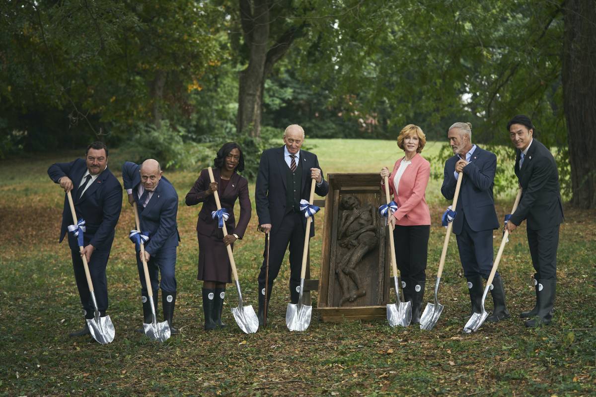 A la lecture du synopsis, vous constatez ô combien le sujet est prestigieux. Pensez donc : le G7, de beaux discours sur l’avenir de la planète, des décisions géopolitiques stratégiques, les sourires confiants de nos bien-aimés dirigeants pour la photo-souvenir. Rassurez-vous : la production l’a bien compris, et le film déploie son luxe avec l’ostentation tapageuse d’une réception présidentielle à l’Élysée. Des comédiens prestigieux donc, le plus grand château de Hongrie comme lieu de tournage, une délicate bande-son orchestrale, une photographie joliment onirique, et même Ari Aster à la production. Nos yeux en ont pour leur argent et on ne regrette pas de payer ses impôts.